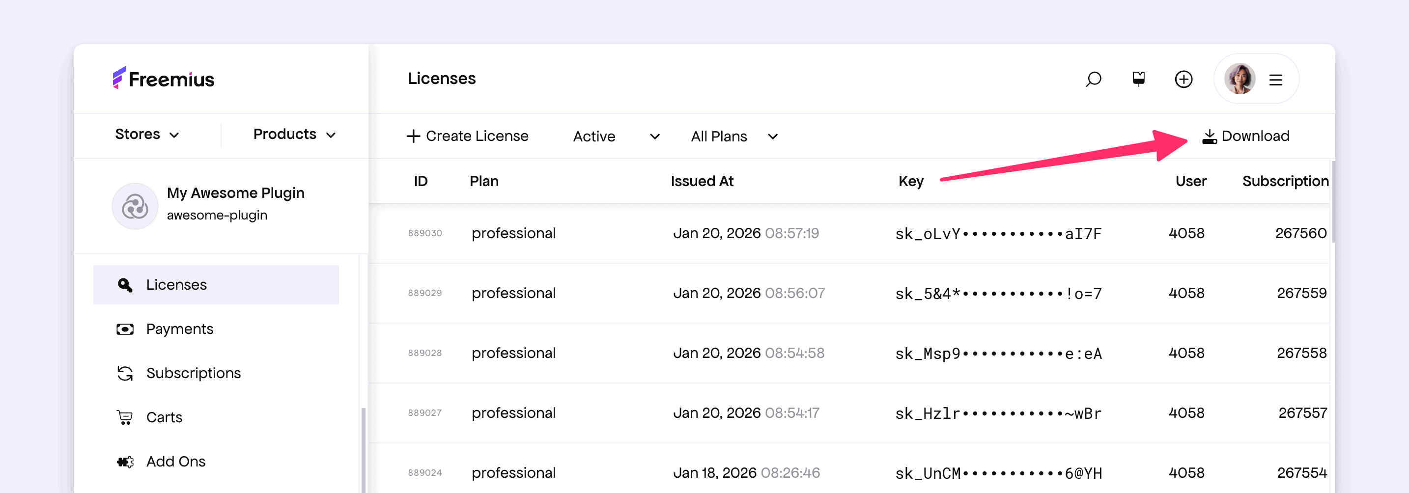 - The licenses export was missing the license key
