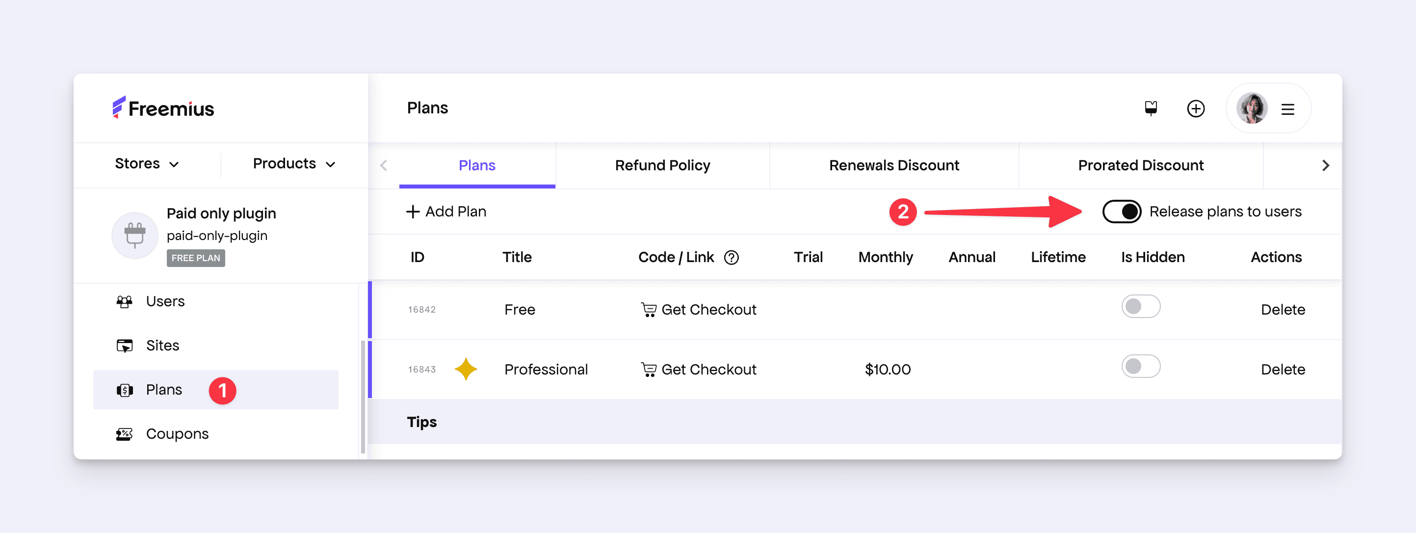 For most new products that intend to sell from the beginning, this step will be automatically completed as soon as the first paid plan is added. For others, the checklist now clearly highlights the required action: visiting the Plans page and enabling the Release Plans toggle.