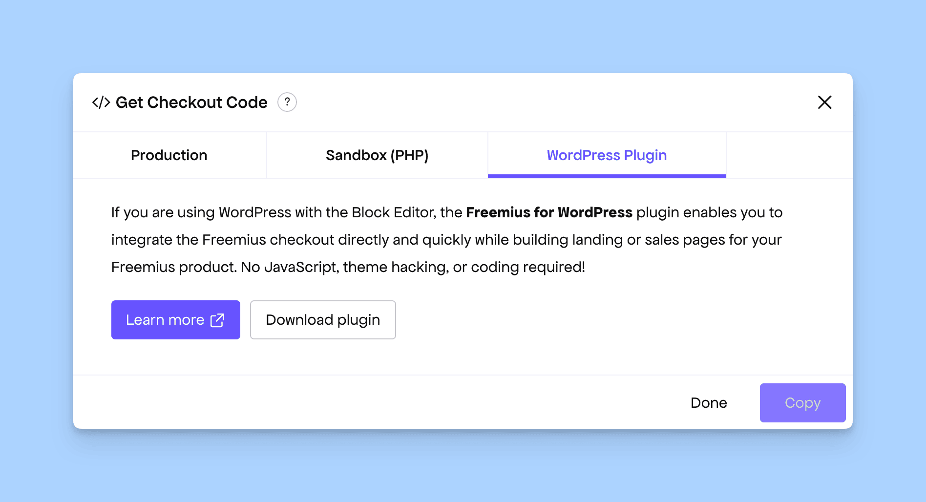 If you’re selling your WordPress product with Freemius, then besides the built-in WP SDK Checkout, we’ve always recommended embedding a pricing page on your own marketing website using the Freemius Checkout JS SDK. However, this required writing and maintaining the integration code manually.