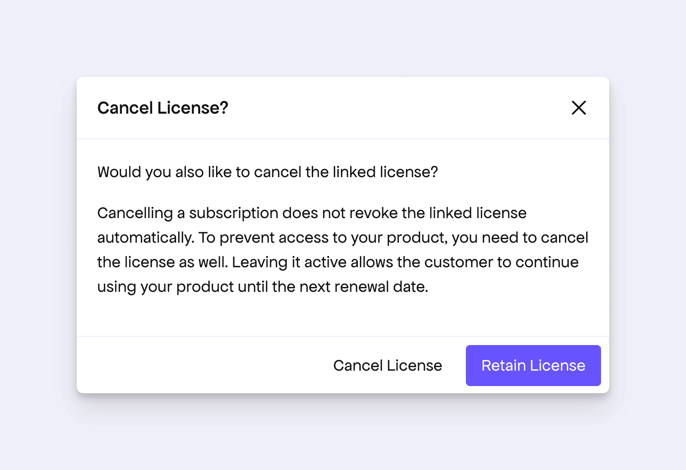 Smarter License Retention Guidance When Cancelling Subscription