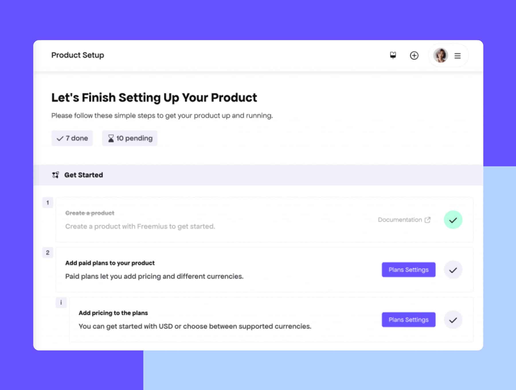 After creating a product, makers are taken straight to the Setup Checklist, keeping onboarding smooth and moving things forward without unnecessary detours.
