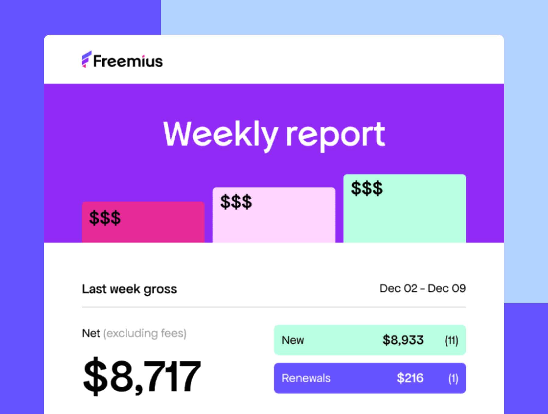 Weekly reports give you a quick overview of how your products performed over the past week.
