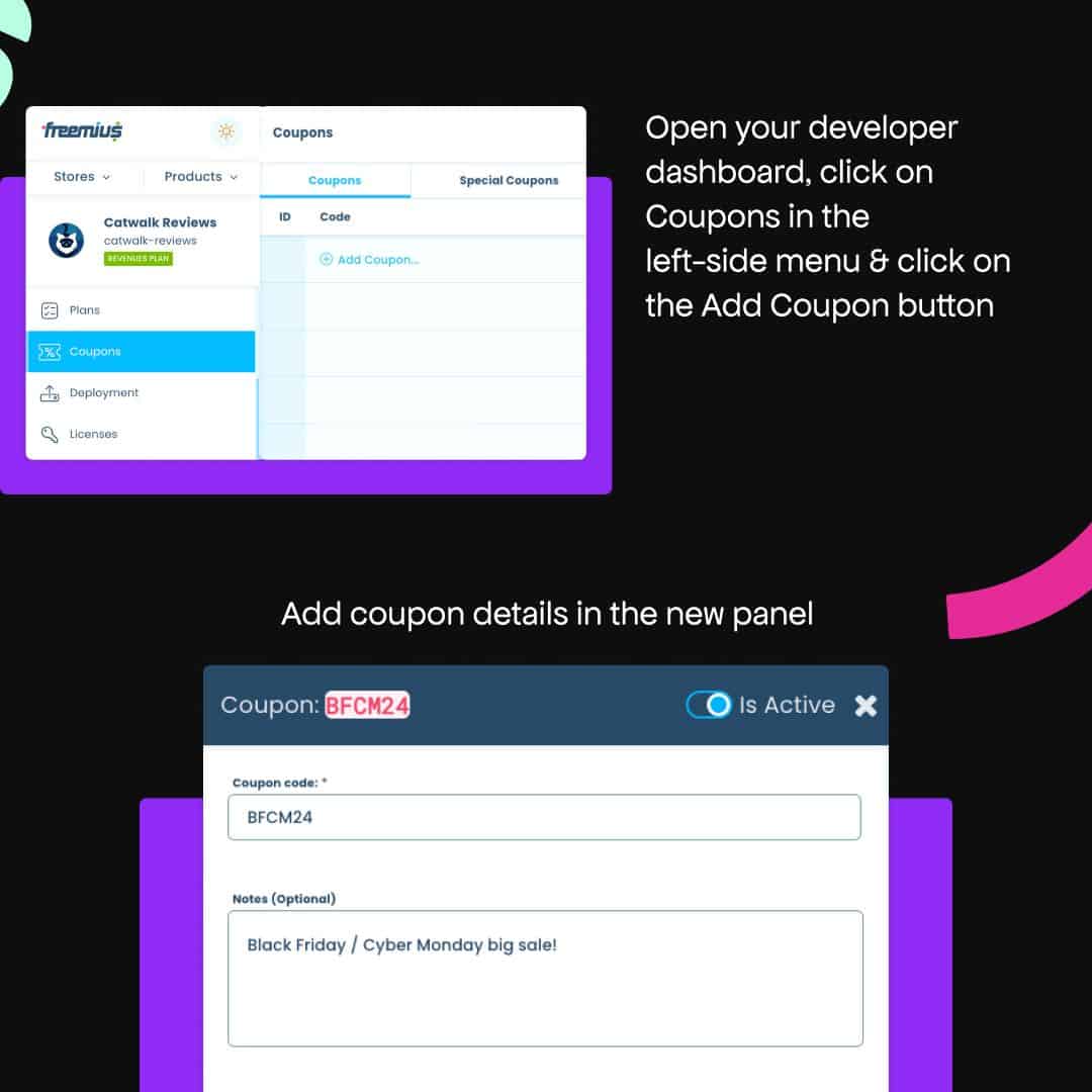 Here’s how makers can add a coupon to the Freemius Checkout to catch customers who missed the BFCM offer. Just remember that discounts can’t be combined.