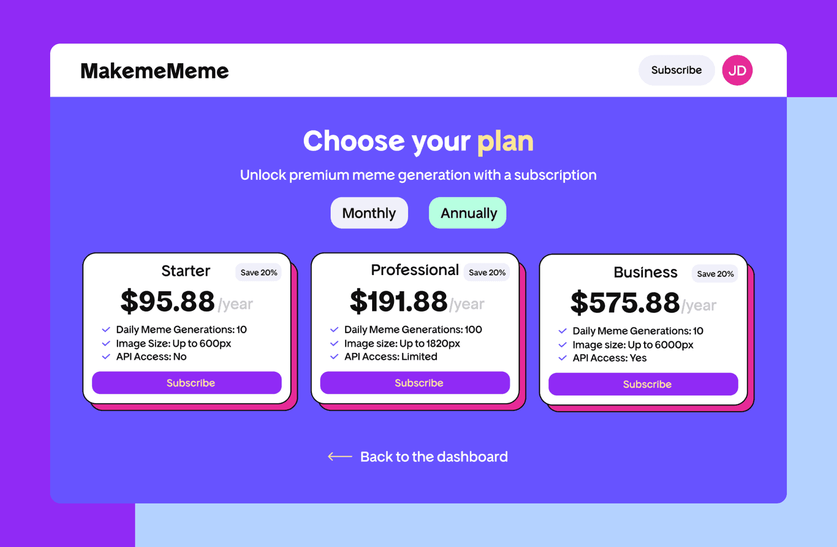 Then, set up your subscription plans. You can offer monthly and annual billing options, different tiers, and feature lists for each plan.