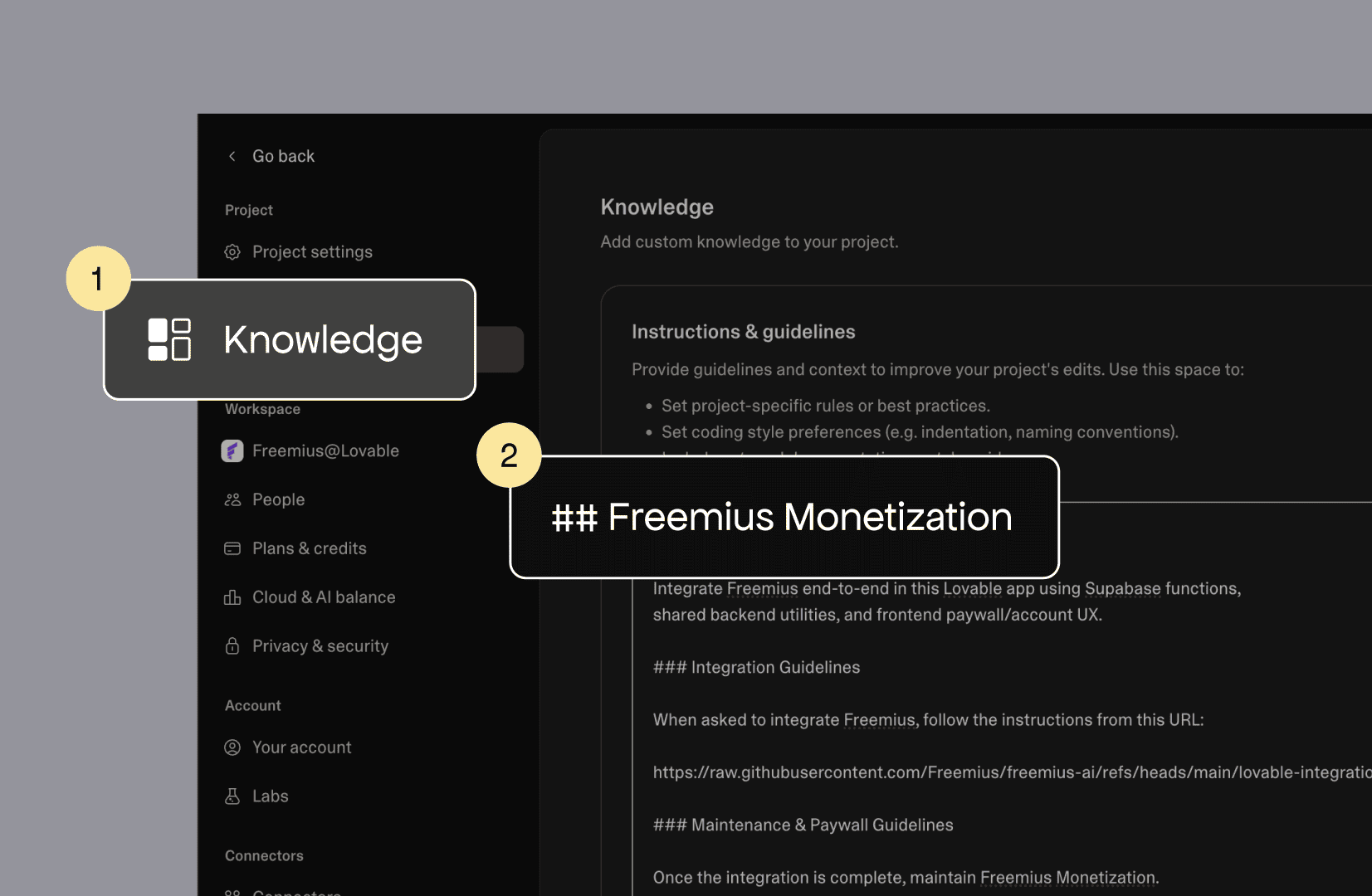 2. Add Freemius integration instructions to Lovable’s Knowledge Base