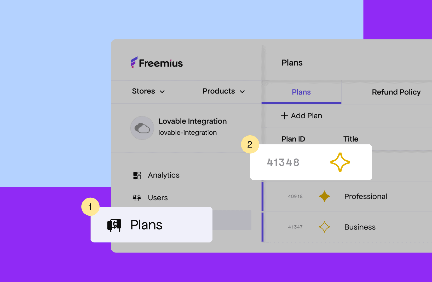 You can find your plan IDs in the Freemius Developer Dashboard under your product’s plans.