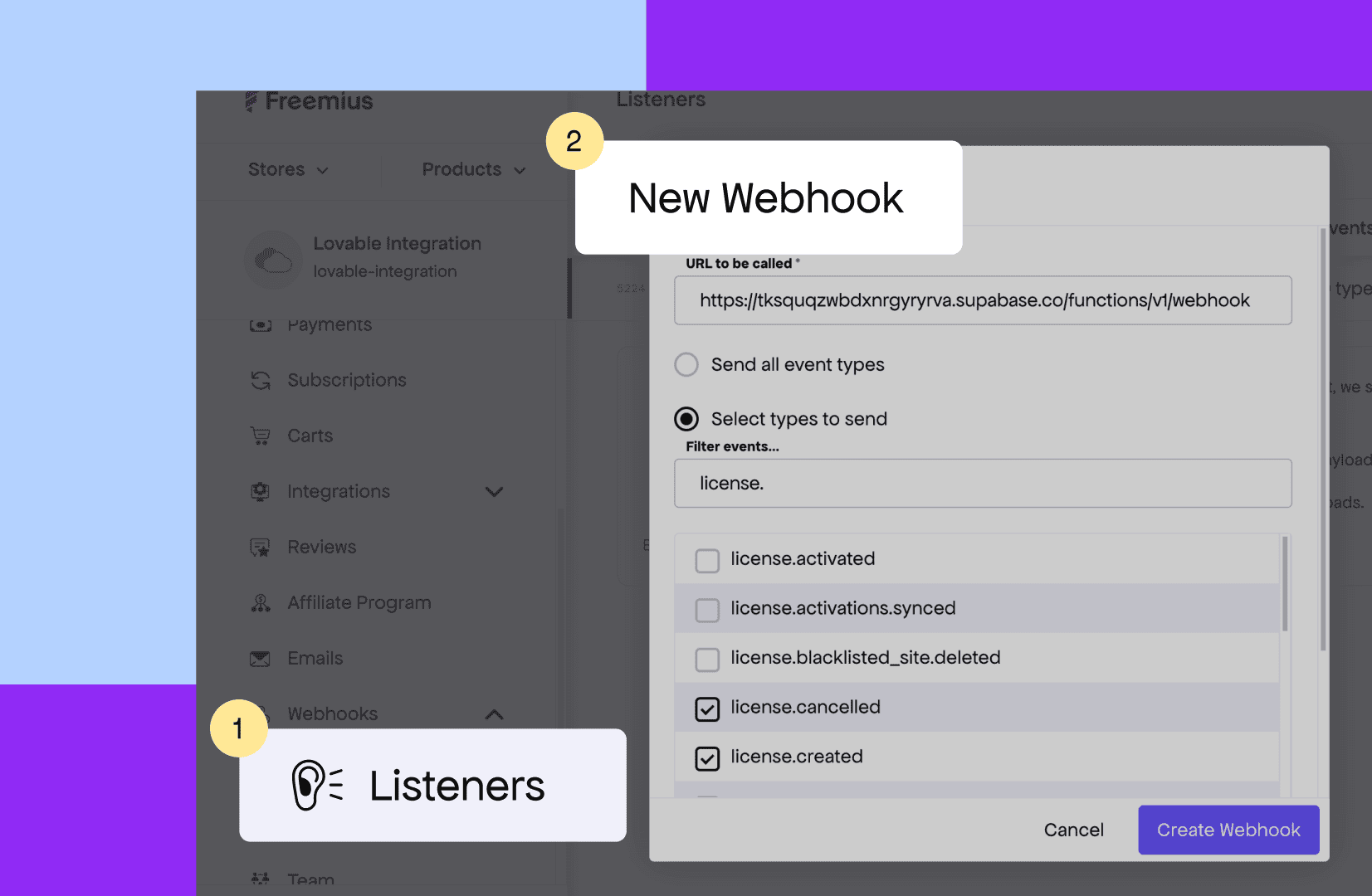 4. Configure checkout redirection and webhooks in your Freemius dashboard