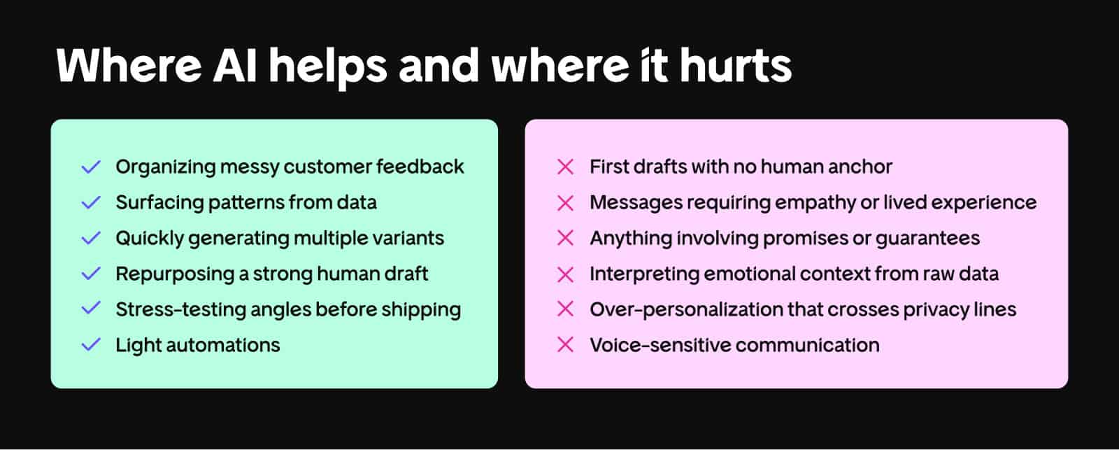 AI will churn out 20 emails in a minute, and they’ll all be… fine. But “fine” is the enemy during BFCM.