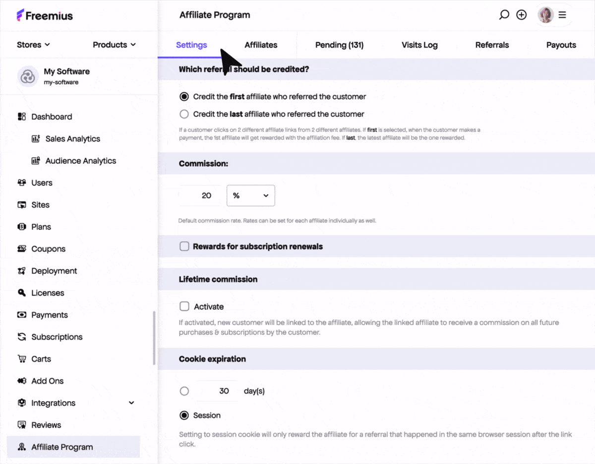 For small teams, this creates growth without constant acquisition spend. Freemius’ affiliate platform supports this, giving customers a way to recommend you and making referrals trackable.