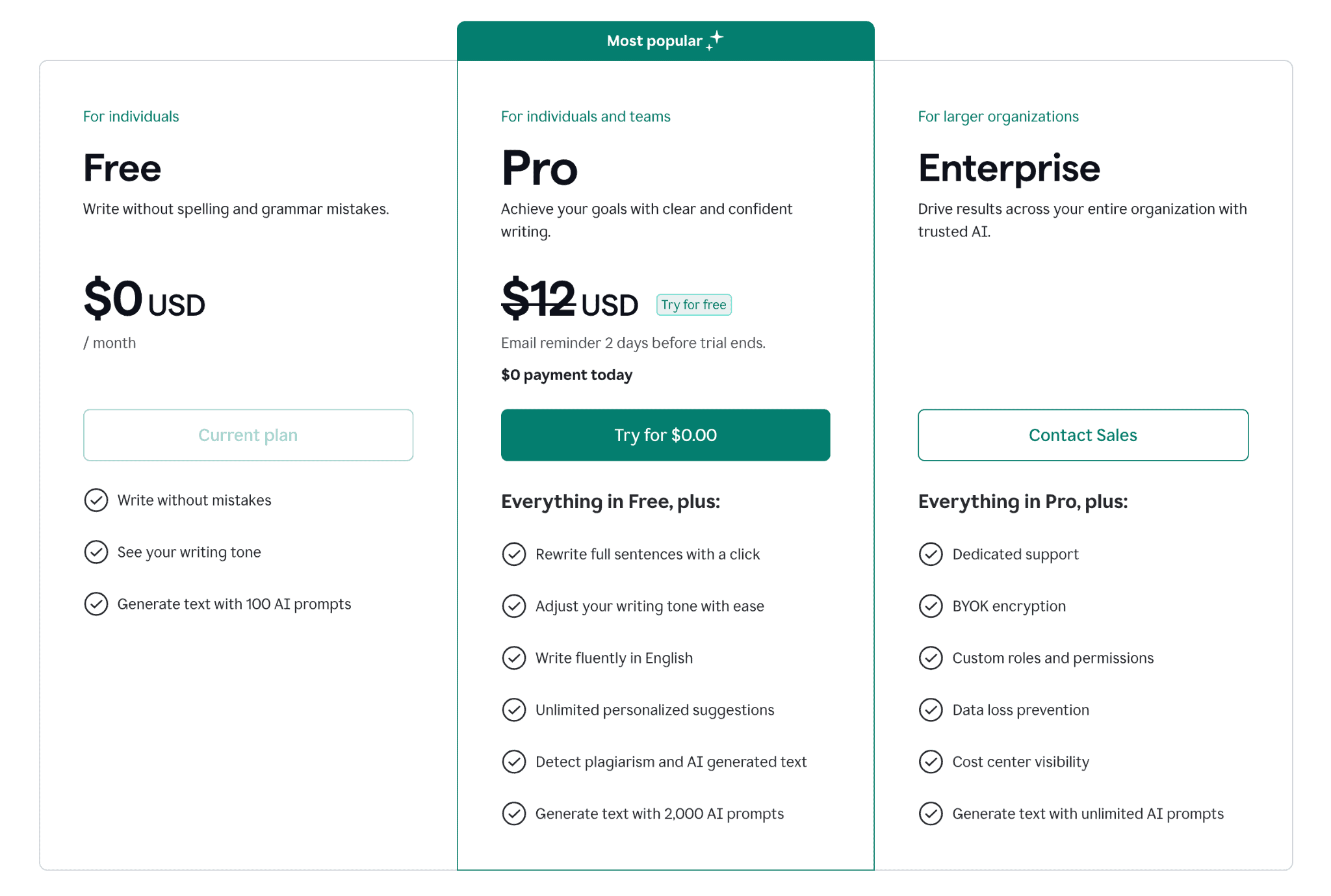 Frame each plan around outcomes. For example, Grammarly describes the tasks you can accomplish in each tier: