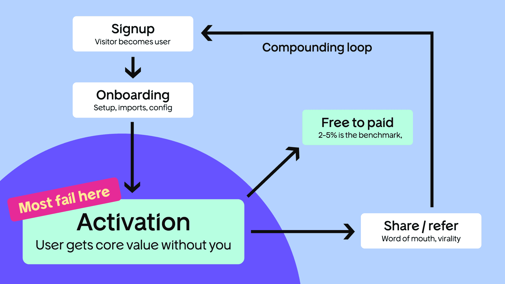 But this loop requires activation. If your free trial requires a CSV import, settings walkthrough, and 20 minutes of configuration before anything works, users will churn.