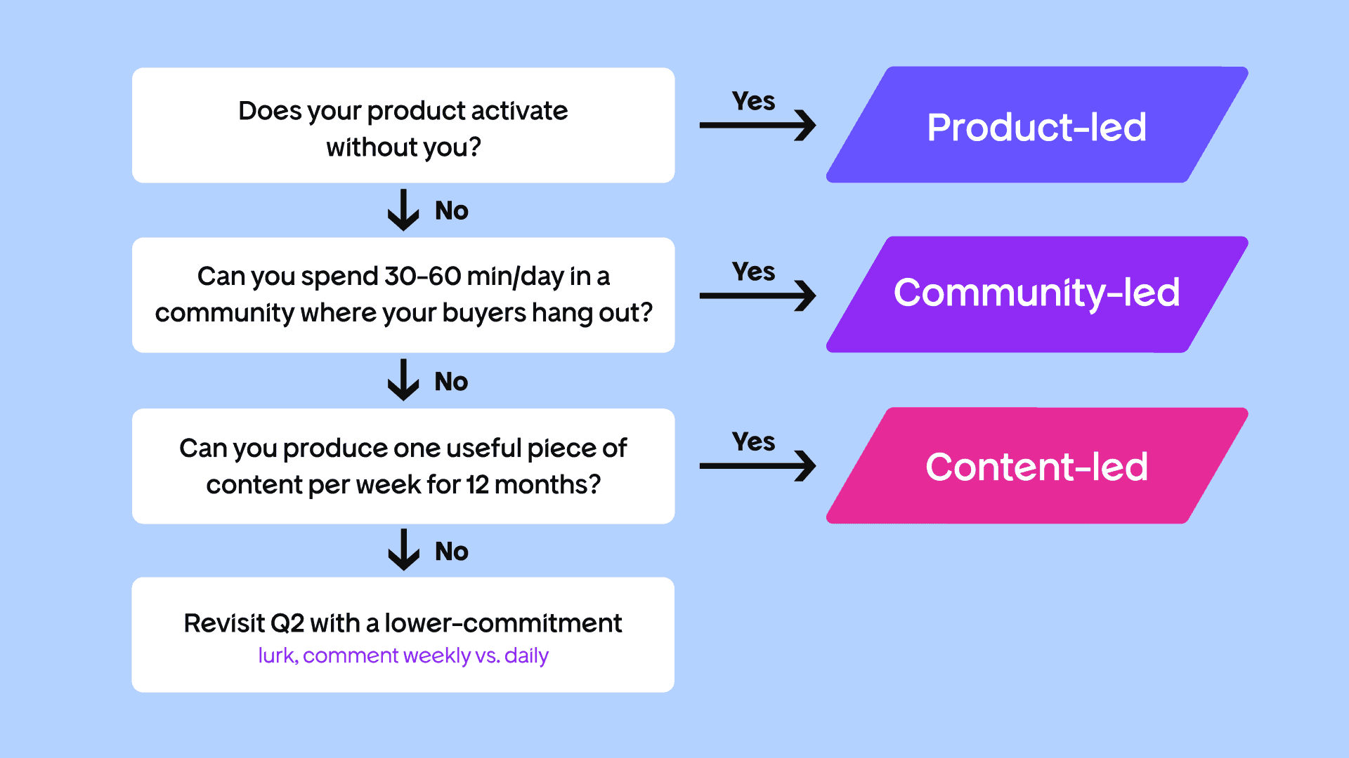 If your product requires buyers to discover it through trust rather than trial, community-led is where you build that trust.