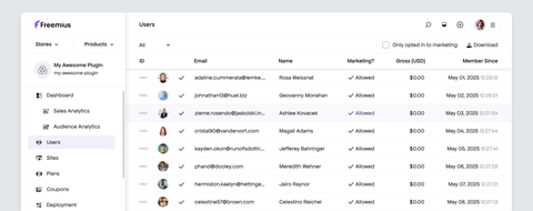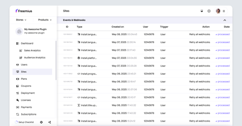 After following the instructions and integrating the Freemius SDK into your product - Freemius Insights will automatically become operational, and begin to capture data from your product’s users. Data from every user that opts-in will be saved and displayed on your Freemius dashboard in a way that facilitates recognizing any tendencies/behaviors among your users, as well as identify any issues your users may be having with your product.