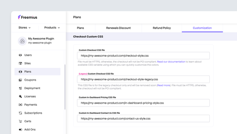Then go to Plans → Customization and put the URL under the Custom Checkout CSS file field.