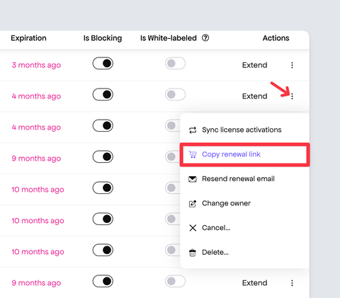 - Click on the Copy Renewal Link button that will copied to your clipboard.