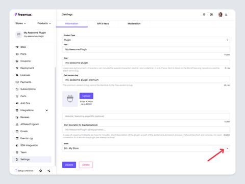 In Freemius, you have the flexibility to move products between different stores. This is particularly useful when reorganizing for better operational clarity or adjusting ownership.