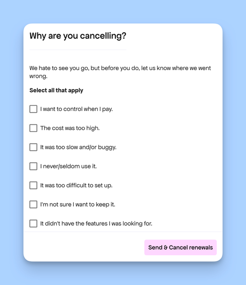 Sometimes, users cancel their subscriptions for reasons that can be addressed to improve your product or service. Understanding these reasons helps enhance customer retention and reduce churn.