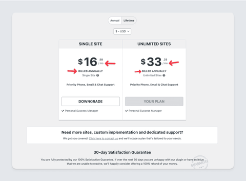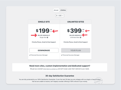 Set the default currency of the pricing page and checkout within the WP Admin dashboard.