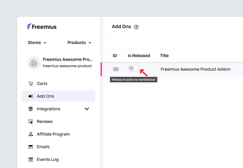 Whenever you want to release a new add-on just create it in the dashboard as described and it will appear automatically in the add-ons marketplace inside the admin dashboard. There is no need to update the parent product to make changes in the add-ons collection.