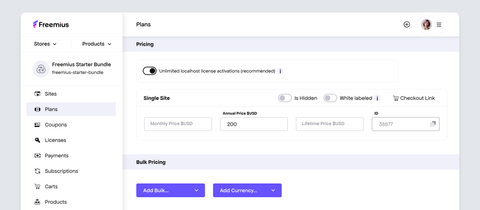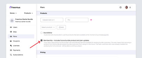 Next, go to the Plans page to set the bundle's plans and prices (just like you would for a plugin or a theme):