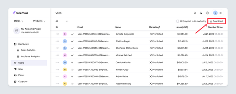 For now, the best way is to either download the ‘users list’ file from the Users section in the dashboard,