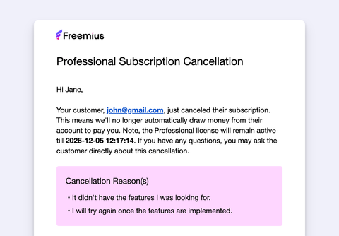 - [Automated Emails Sent by Freemius](https://freemius.com/help/documentation/marketing-automation/transactional-emails.md): Explore Freemius automated user emails. While not currently customizable, we're planning to introduce templates for more control.