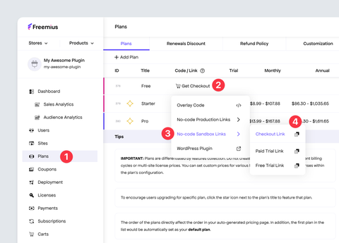 - [Providing Prorated Discounts on Upgrades & Downgrades in Freemius Checkout](https://freemius.com/help/documentation/checkout/proration.md): How Freemius handles prorating upgrades and downgrades, simplifying billing for customers, and ensuring sellers receive the right value.
